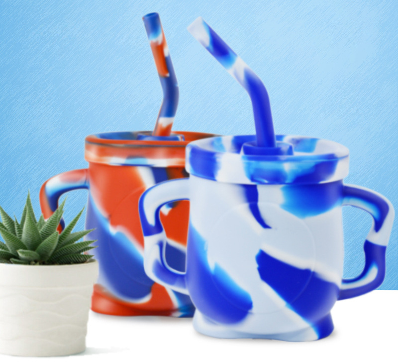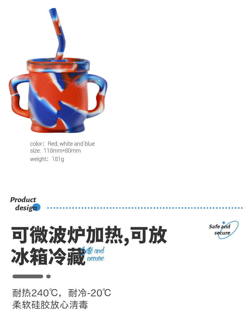 FDA新款儿童饮水硅胶杯 带盖子吸管防尘宝宝杯 环保把手硅胶杯