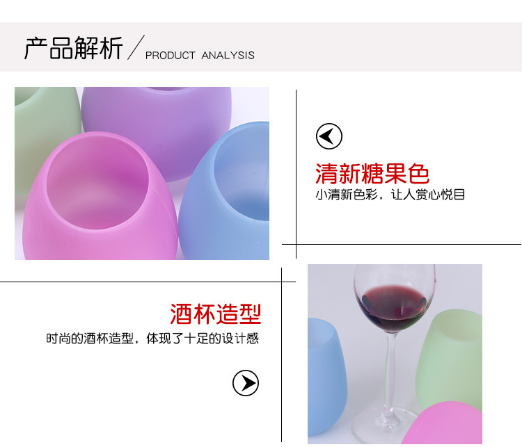新款硅胶马卡龙混色红酒杯 可折叠便携式户外环保防摔